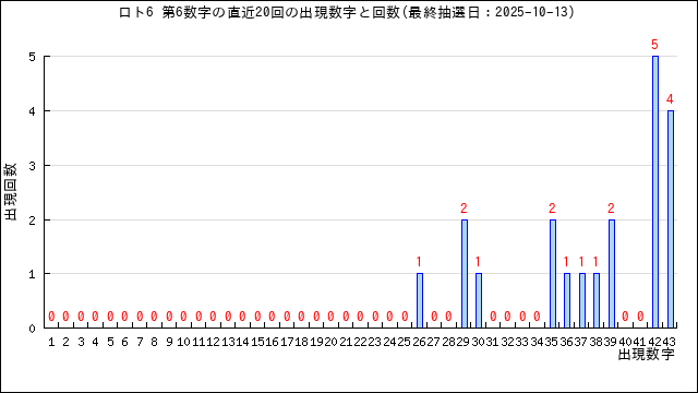 第6数字の出現回数グラフです。