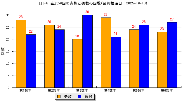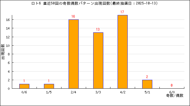 当選番号の奇数・偶数の出現数をグラフにしました。