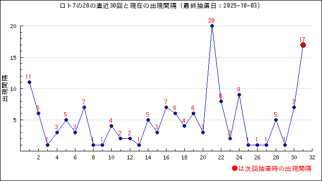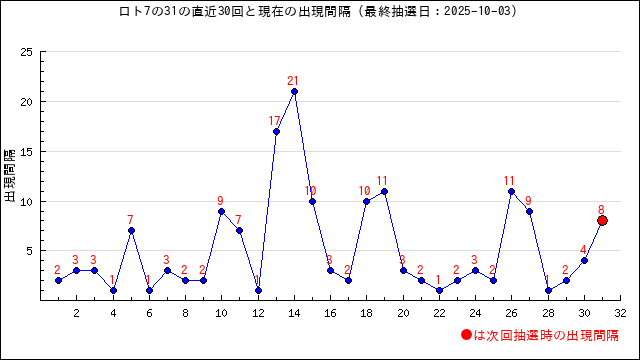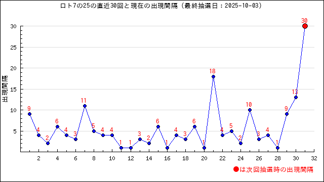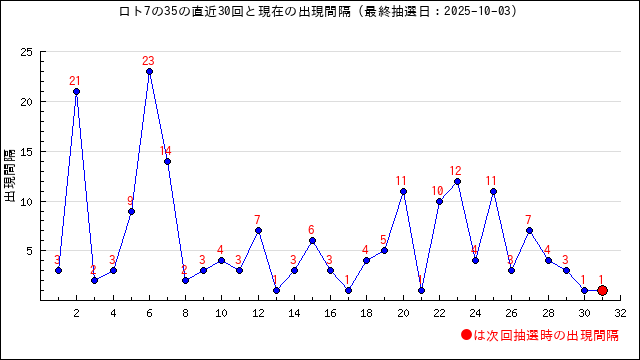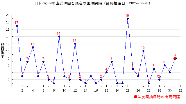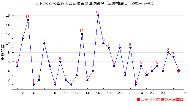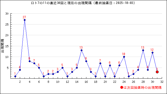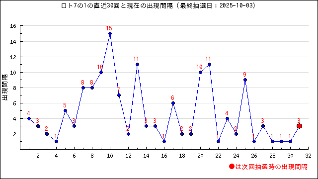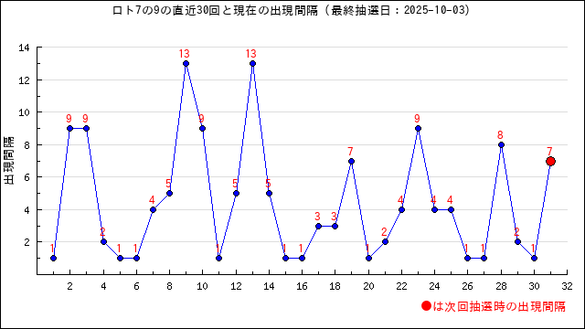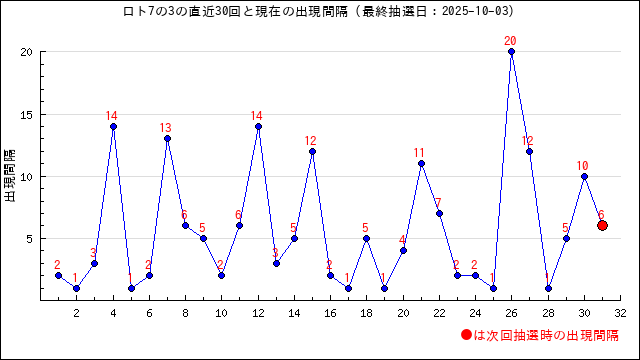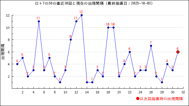 どの数字がどのくらいの周期で出ているのか確認が出来ます。
