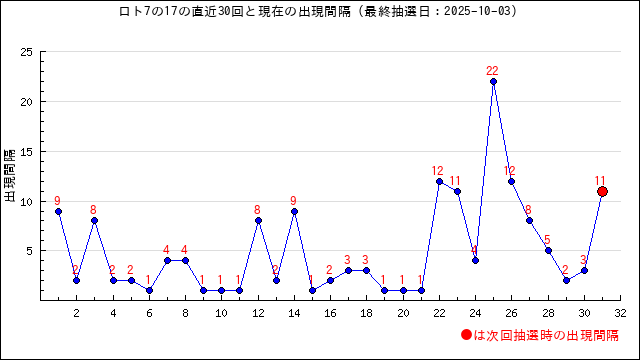 一番右の●は現在の出現間隔の値になります。(出現待ち回数)
