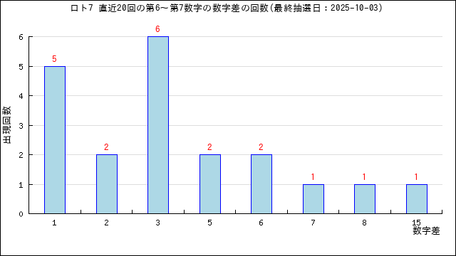 過去20回の数字差の合計の出現回数をグラフにしました。