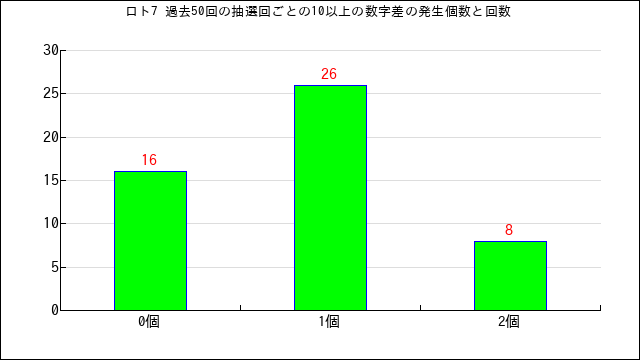 10以上離れている数字の出現個数と回数をグラフにしました。