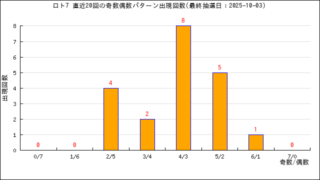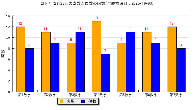 当選番号の奇数・偶数の出現数をグラフにしました。