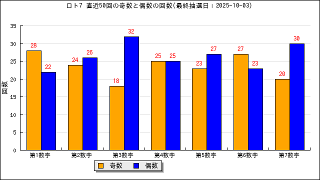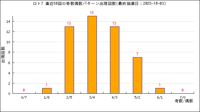 当選番号の奇数・偶数の出現数をグラフにしました。