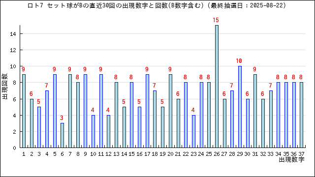 直近30回の当選番号の出現回数をグラフにしました。