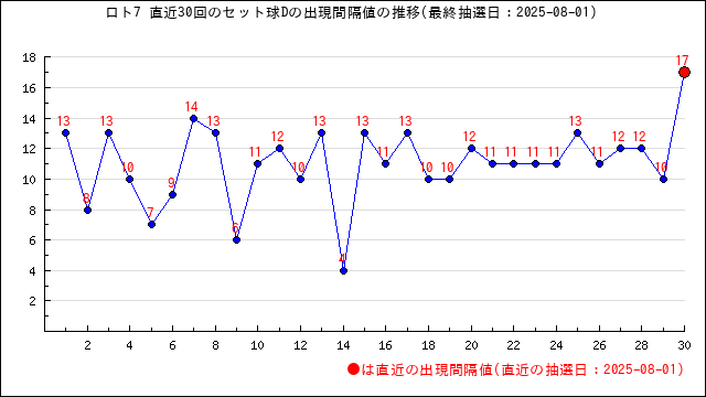 過去30回の出現周期(一番左は一番最近の周期・左から右に向かって古くなります) | セット球 | 1 | 2 | 3 | 4 | 5 | 6 | 7 | 8 | 9 | 10 | 11 | 12 | 13 | 14 | 15 | 16 | 17 | 18 | 19 | 20 | 21 | 22 | 23 | 24 | 25 | 26 | 27 | 28 | 29 | 30 |