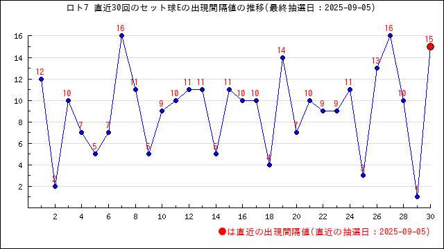過去30回のセット球の出現周期の推移です。