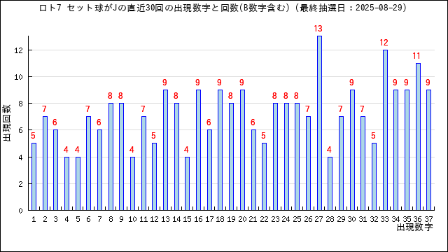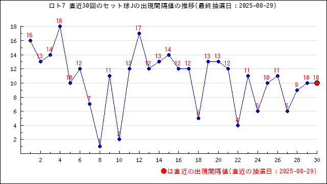 過去30回の出現周期(一番左は一番最近の周期・左から右に向かって古くなります) | セット球 | 1 | 2 | 3 | 4 | 5 | 6 | 7 | 8 | 9 | 10 | 11 | 12 | 13 | 14 | 15 | 16 | 17 | 18 | 19 | 20 | 21 | 22 | 23 | 24 | 25 | 26 | 27 | 28 | 29 | 30 |