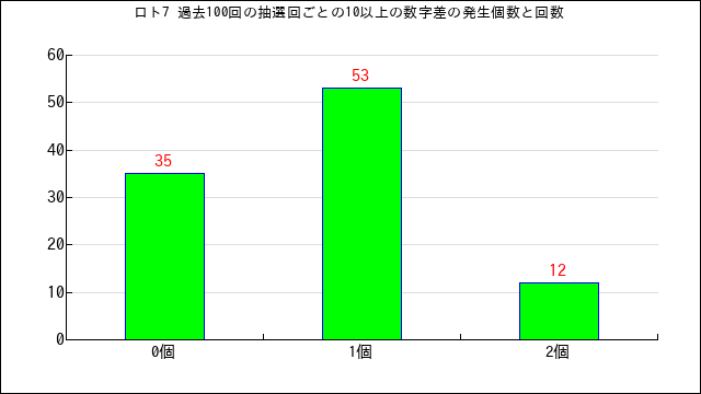 10以上離れている数字の出現個数と回数をグラフにしました。