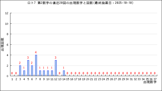 第2数字の出現回数グラフです。