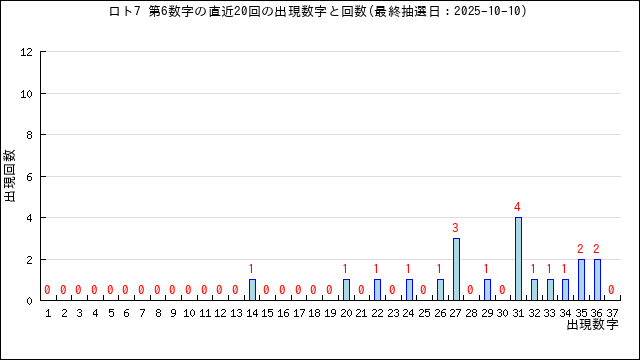 第6数字の出現回数グラフです。