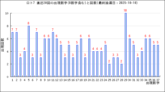 過去20回分の当選番号の出現グラフです。