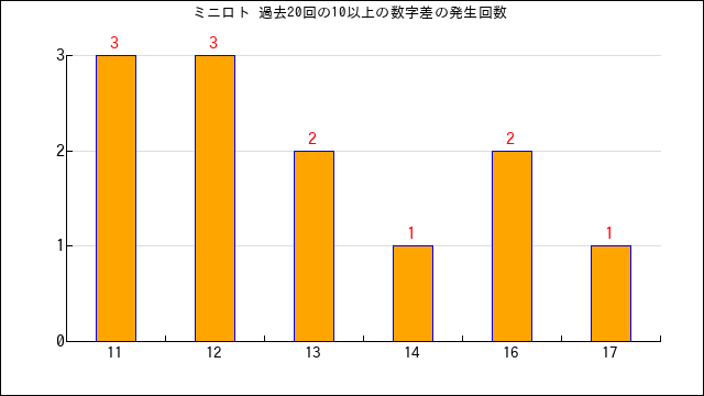 10以上の出現待ち数字が出た回数をグラフにしています。
