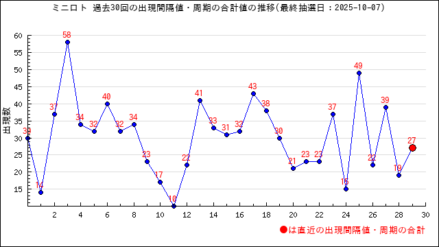 出現間隔値・周期 | 10回以上の 出現待ち数字の 個数 |
