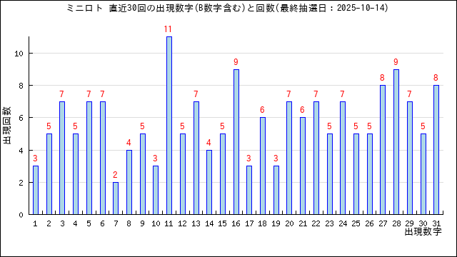 過去30回分の当選番号の出現グラフです。