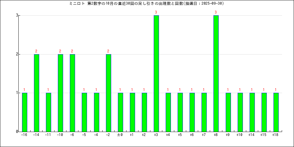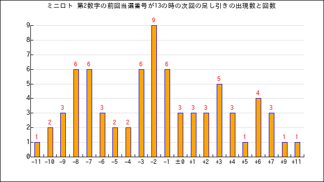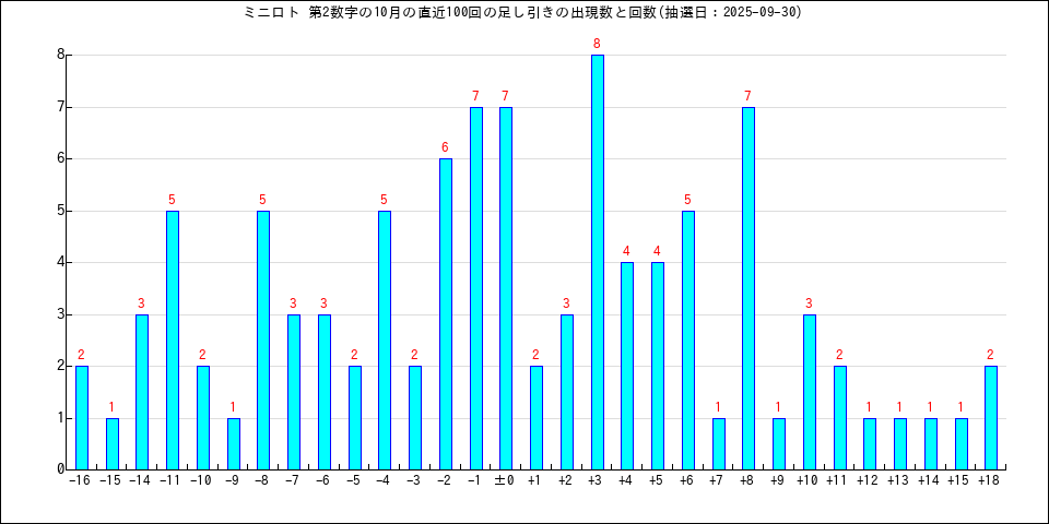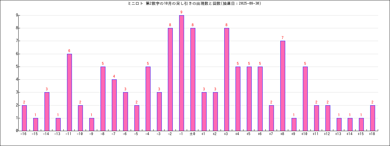ミニロトの直近の当選番号の足し算・引き算の値を分析