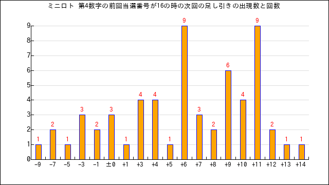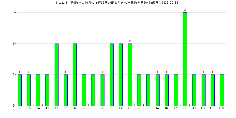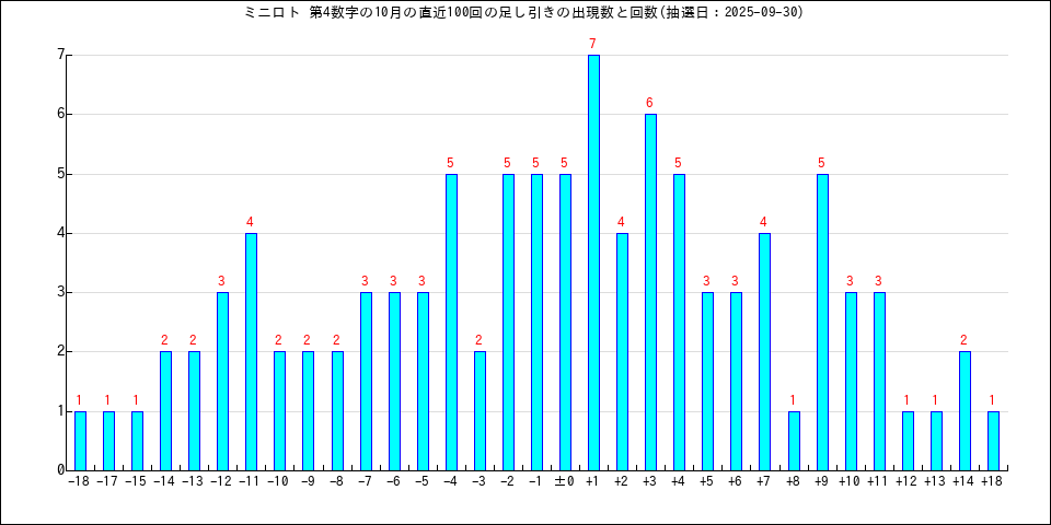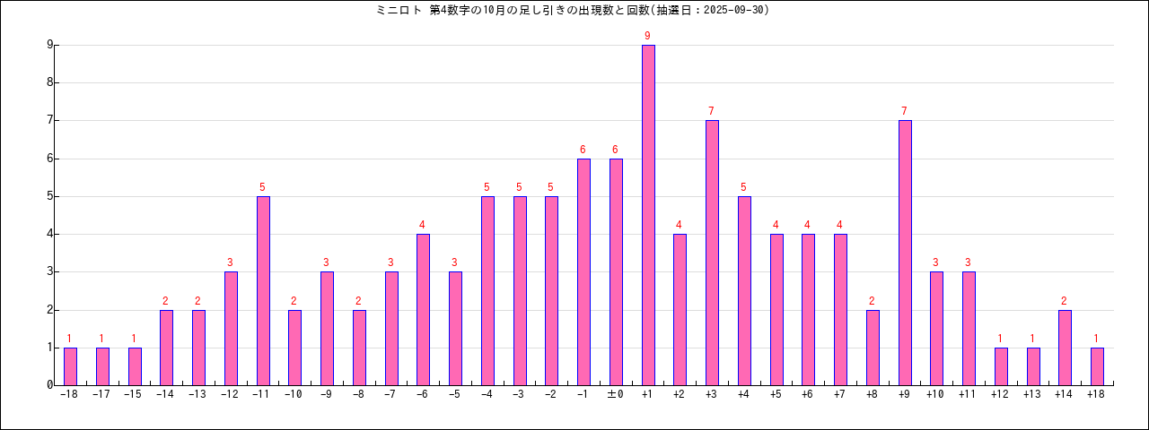 ミニロトの直近の当選番号の足し算・引き算の値を分析