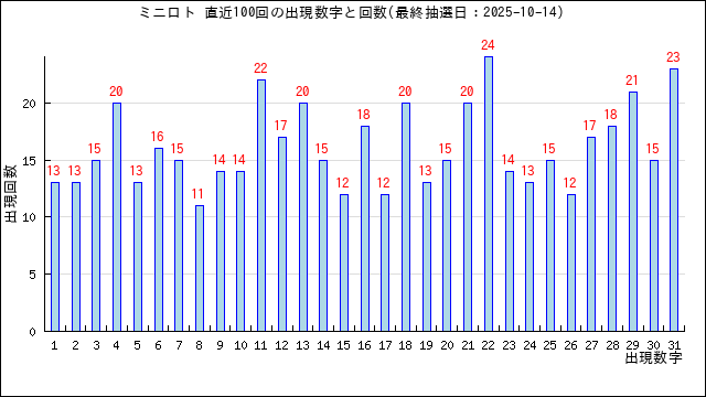 仏滅の直近50回の当選数字の出現回数(B数字は含まず)