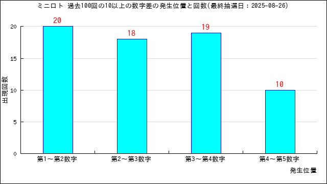 順位 | 数字差 | 出現回数 | 出現率 (過去20回の出現率) |