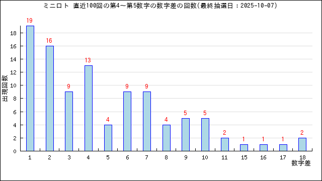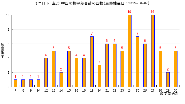 過去100回の数字差の合計の出現回数をグラフにしました。
