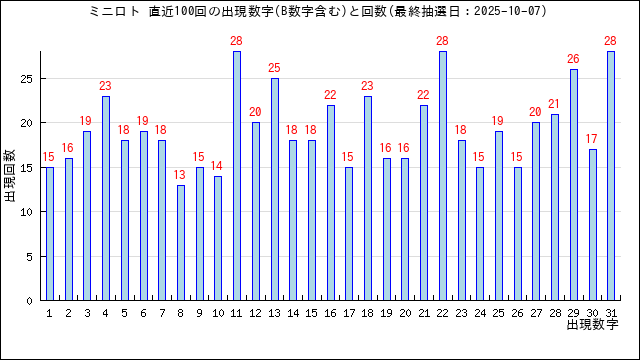 ( )内の赤数字は過去100回の出現回数。B数字も含む。