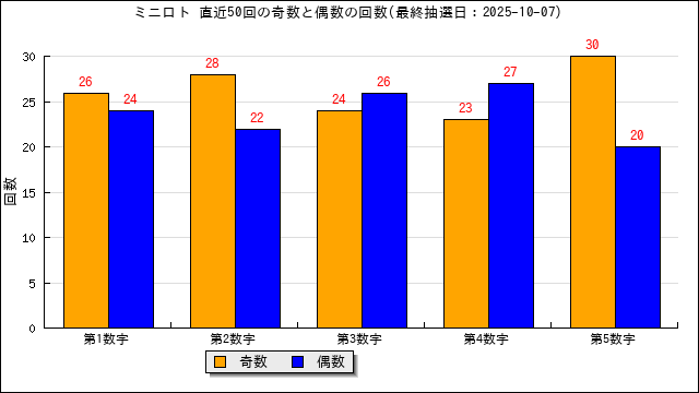 当選番号の奇数・偶数の出現数をグラフにしました。