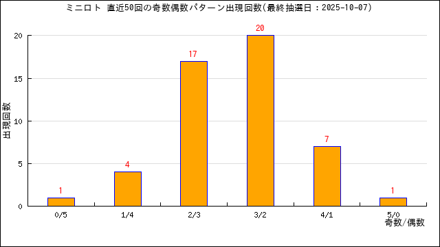 過去50回の奇数/偶数のパターンの出現回数グラフです。