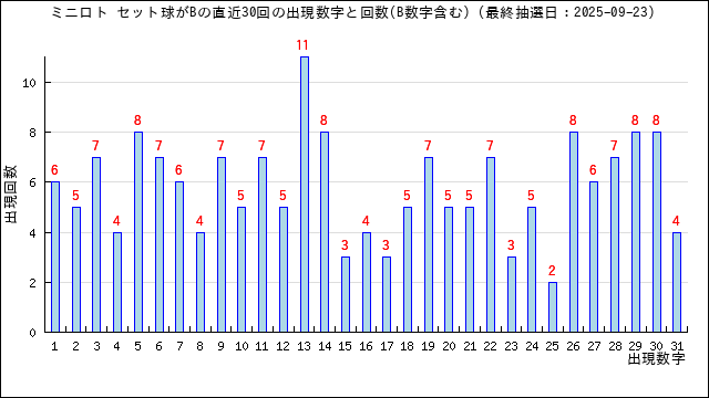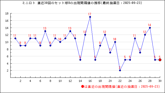 過去30回の出現周期(一番左は一番最近の周期・左から右に向かって古くなります) | セット球 | 1 | 2 | 3 | 4 | 5 | 6 | 7 | 8 | 9 | 10 | 11 | 12 | 13 | 14 | 15 | 16 | 17 | 18 | 19 | 20 | 21 | 22 | 23 | 24 | 25 | 26 | 27 | 28 | 29 | 30 |