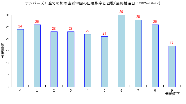 過去50回の当選番号の出現グラフです。