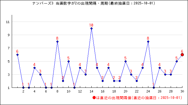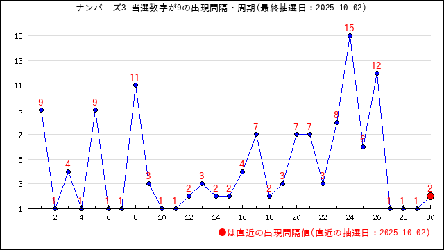 ナンバーズ3過去の出現間隔値・出現周期の推移