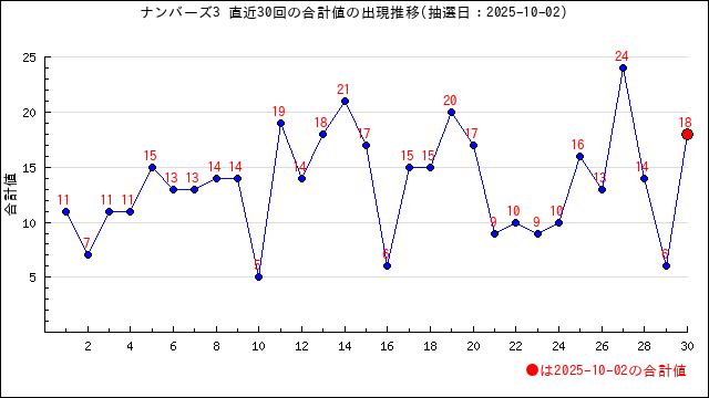 1番右端の赤丸の数字は前回出現した時の合計値です。