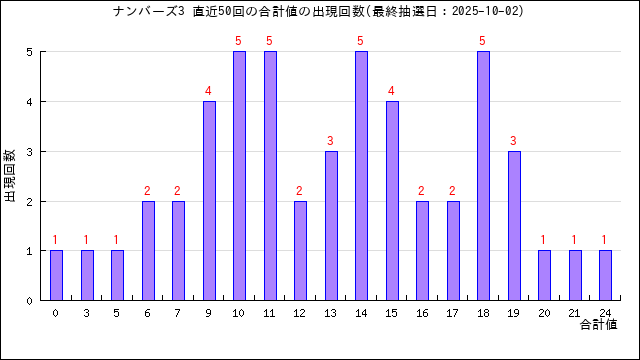 過去50回分の当選番号の合計値の出目表にしました。