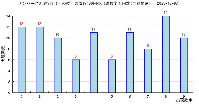 過去100回の一の位では