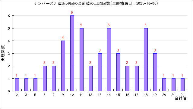 過去50回分の当選番号の合計値の出目表にしました。