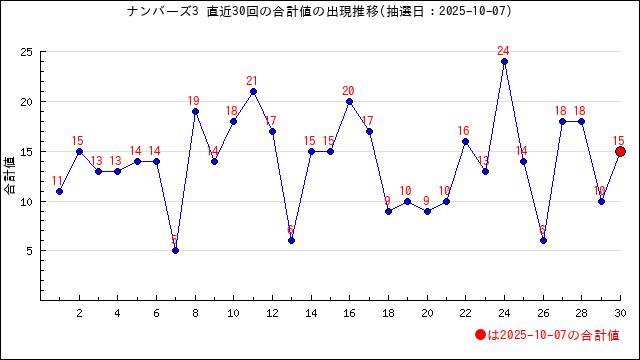 1番右端の赤丸の数字は前回出現した時の合計値です。