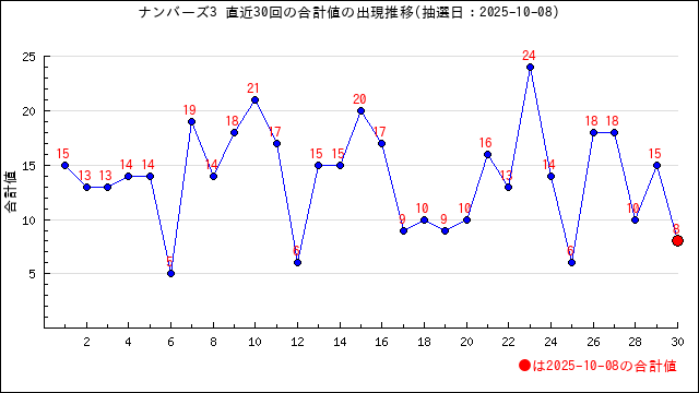 1番右端の赤丸の数字は前回出現した時の合計値です。