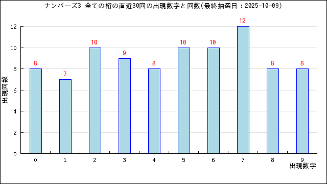 過去30回の当選番号の出現グラフです。