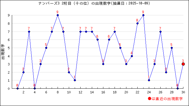 過去30回の十の位では