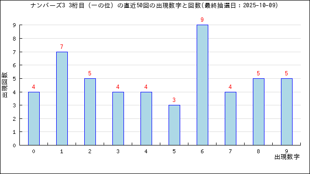 横軸が出現回数、縦軸は3桁目(一の位)の