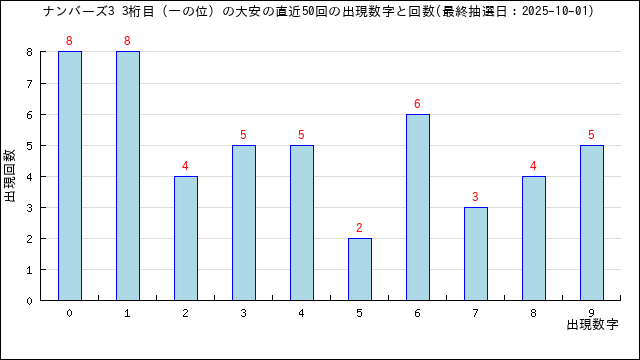 直近の3桁目(一の桁)の数字の出現数を見てみる