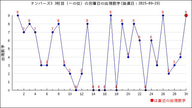 当選番号からよく出ている3桁目(一の桁)の数字は