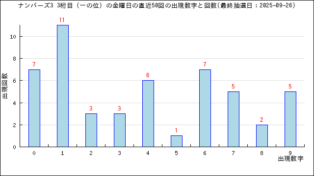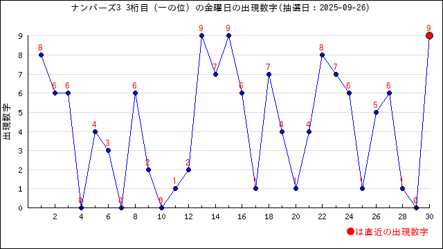 当選番号からよく出ている3桁目(一の桁)の数字は