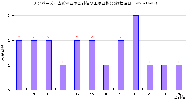過去20回分の当選番号の合計値の出目表にしました。