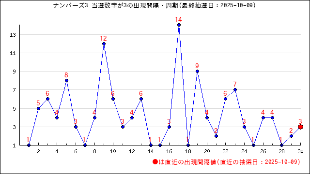 ナンバーズ3過去の出現間隔値・出現周期の推移