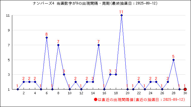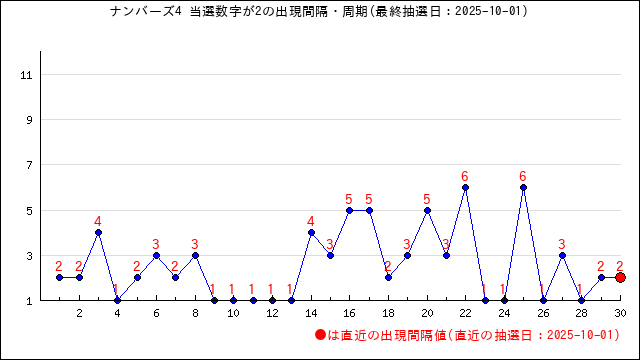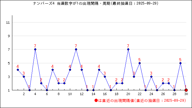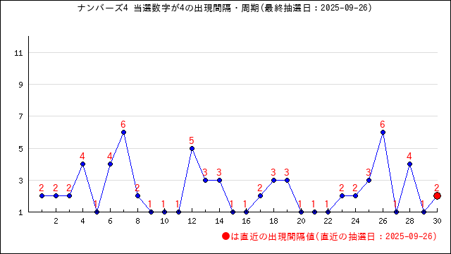 ナンバーズ4過去の出現間隔値・出現周期の推移
