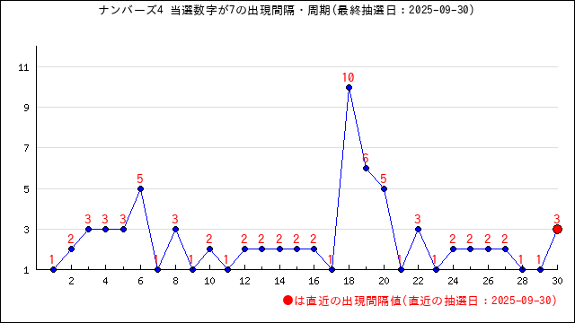 どの数字がどのくらいの周期で出ているのか確認が出来ます。