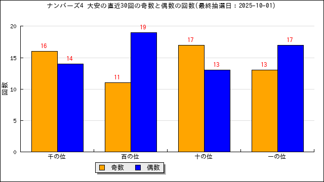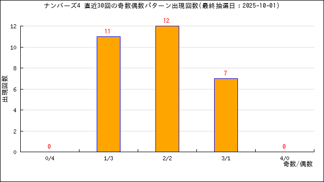 当選番号の奇数・偶数の出現数をグラフにしました。