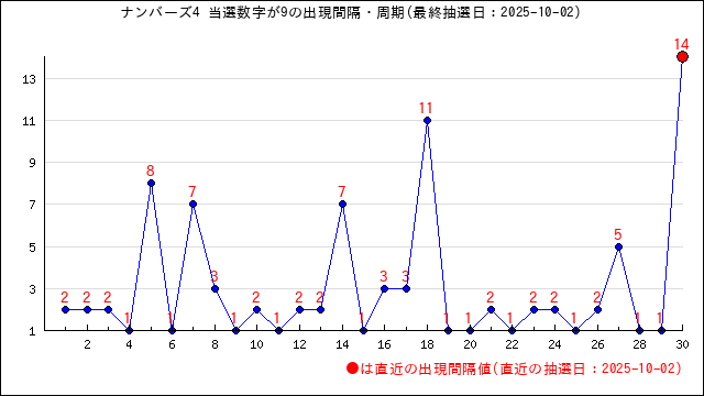ナンバーズ4過去の出現間隔値・出現周期の推移