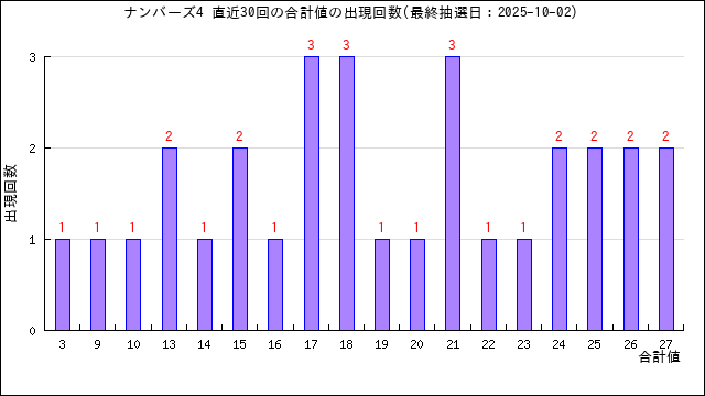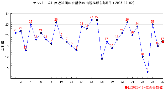 1番右端の赤丸の数字は前回出現した時の合計値です。
