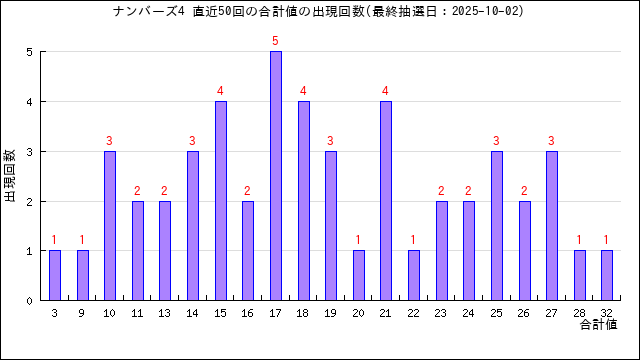 1番右端の赤丸の数字は前回出現した時の合計値です。